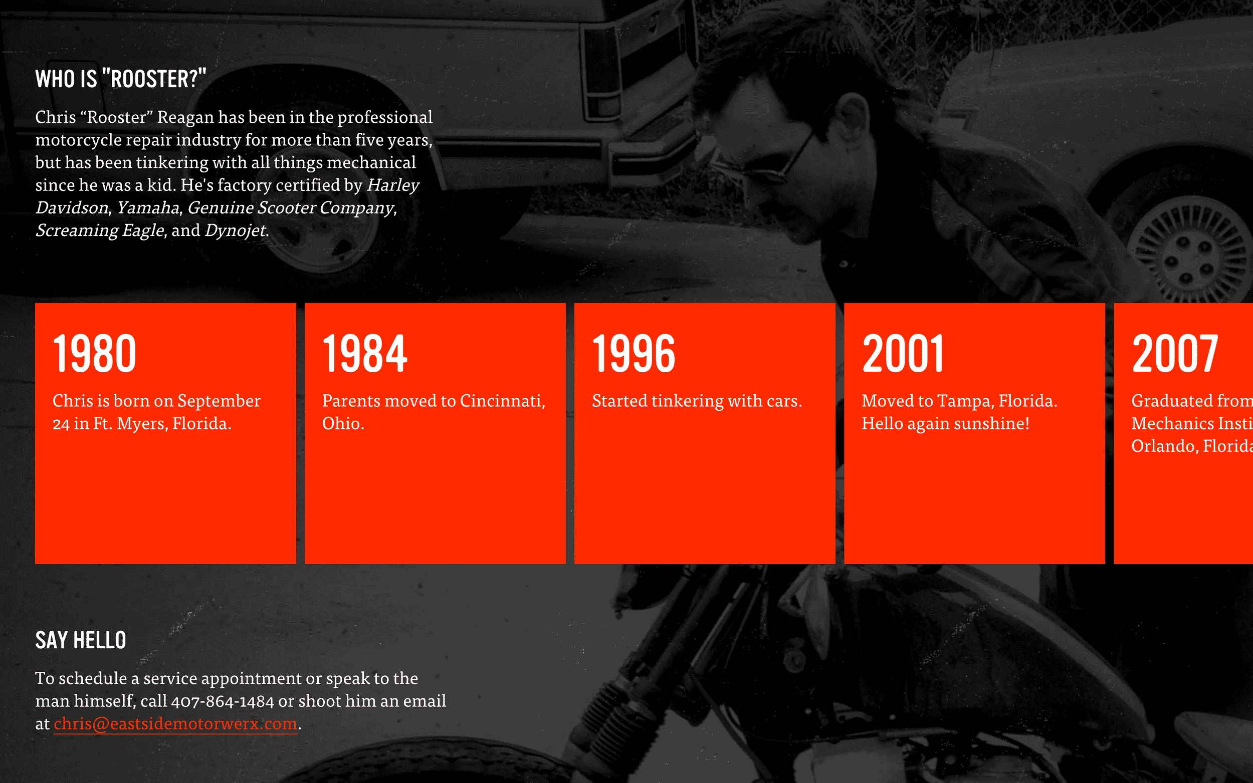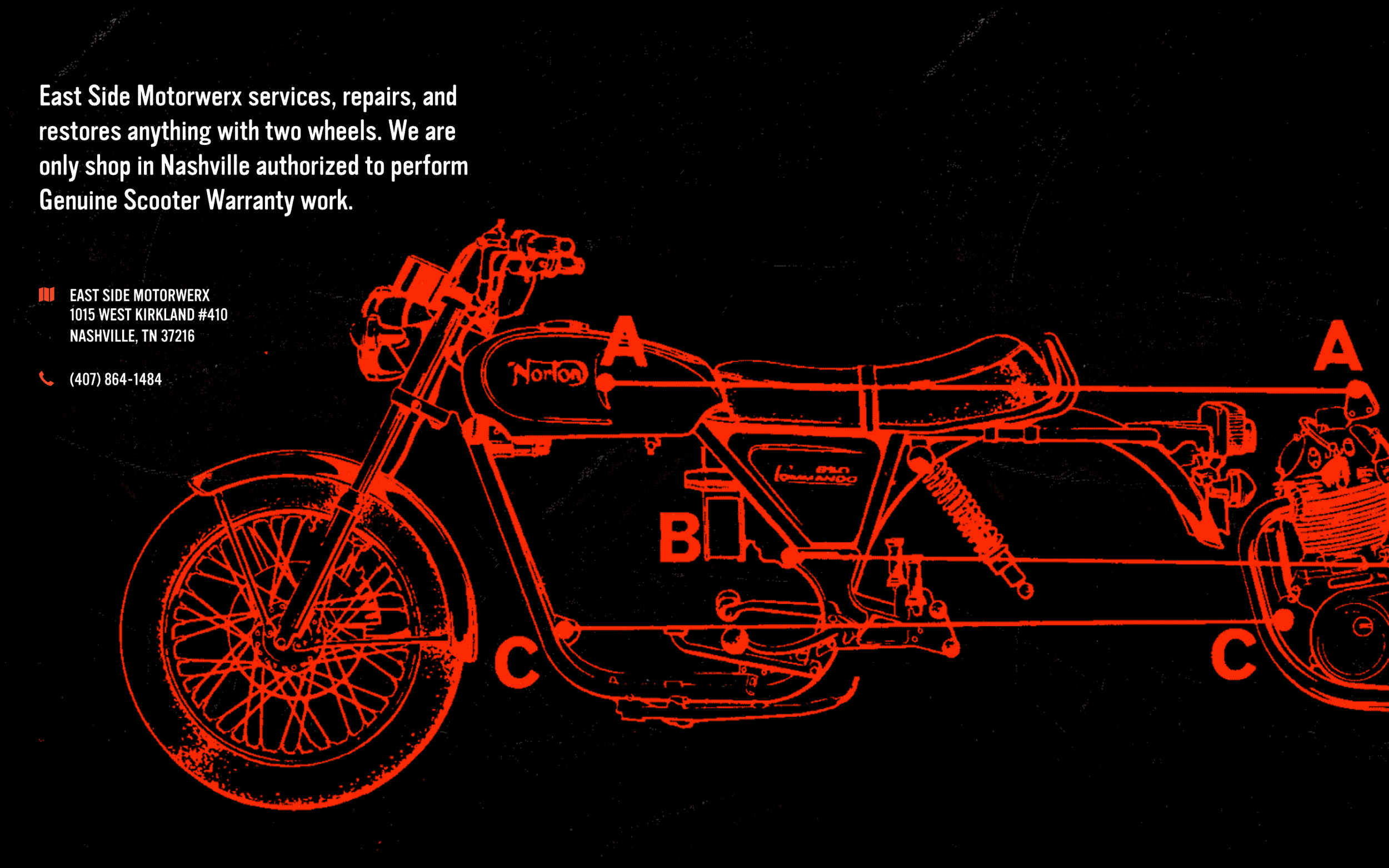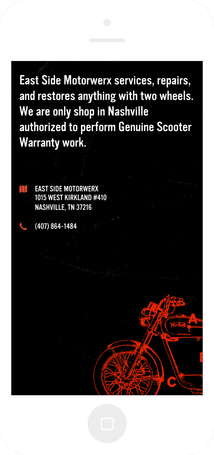 After East Side Scooters closed, their head mechanic branched out on his own and needed a strong presence. I was commissioned to design their logo and website.