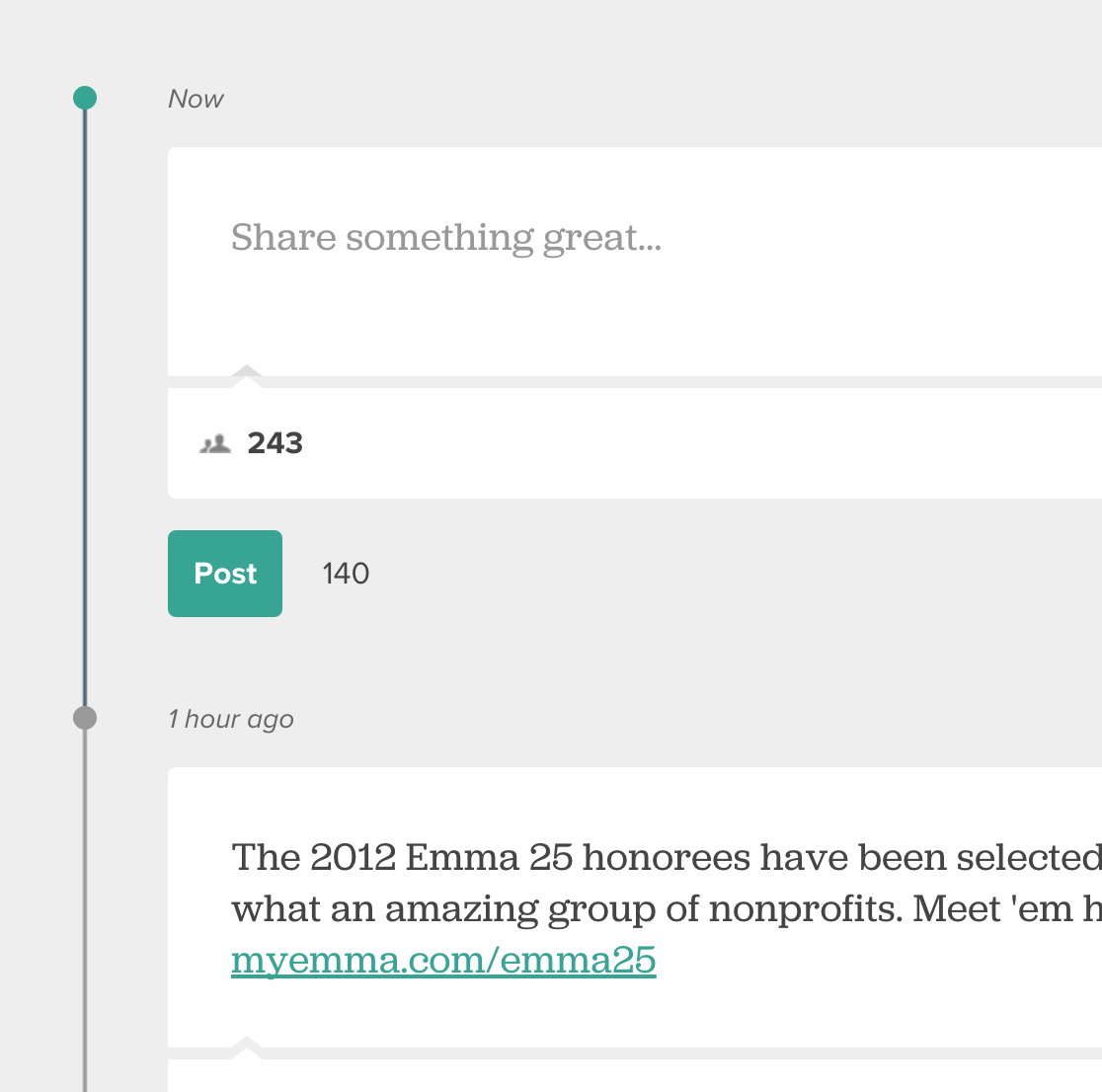 What started as a skunkworks project quickly became our baby and served as the foundation for the future Emma social platform. I designed the layout and all the interactions directly in the browser, first as a prototype and then into the Ember app we were developing.