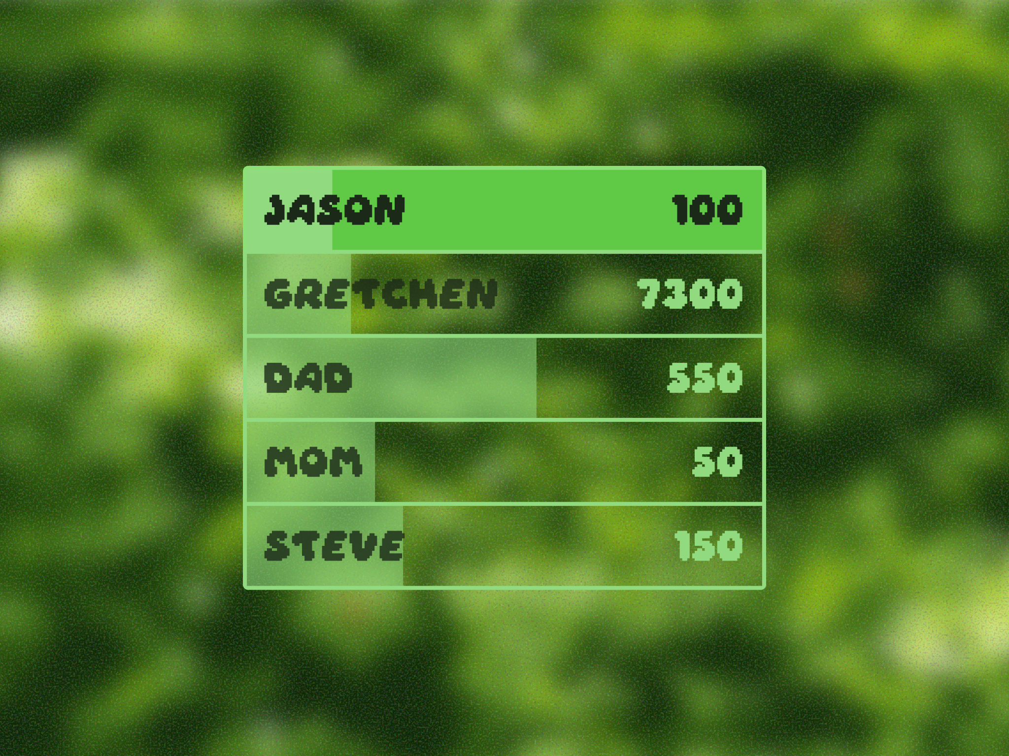 Scoring is the core of the game, so I wanted to make sure it was easy to use and understand. I landed on a stacked progress bar approach that let any number of players keep track of their relative score.